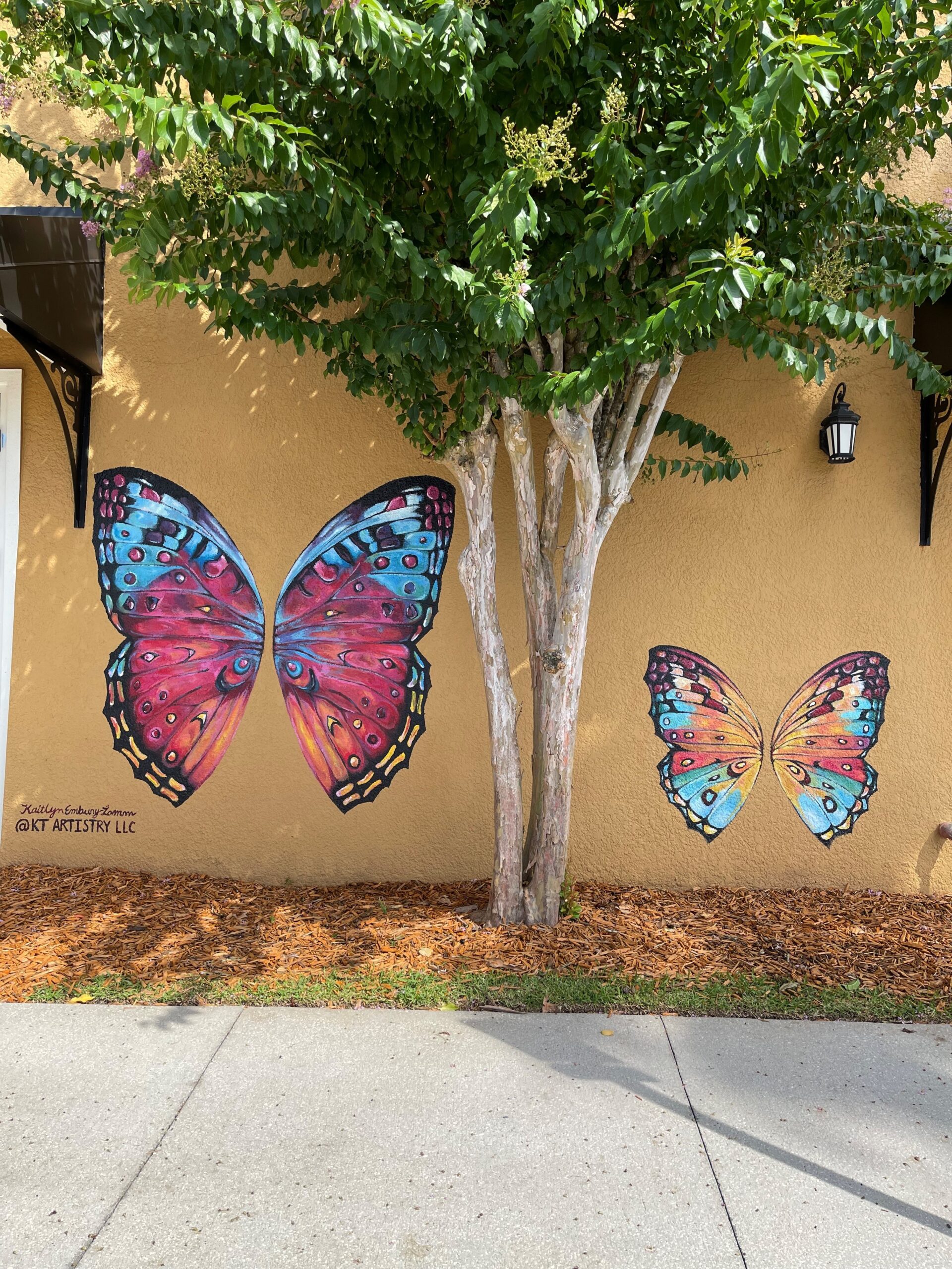 The Take Flight mural series is an ongoing public art project that transforms Avalon Park into an open-air gallery. Created by KT Artistry, each winged mural is designed as an interactive backdrop where visitors can stand, pose, and look as if they are taking flight. These vibrant butterfly, dragonfly, and bee wings turn everyday spaces into colorful landmarks, celebrating both creativity and community.