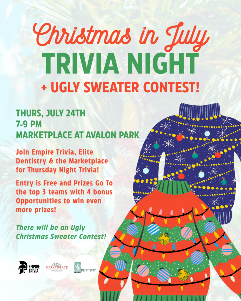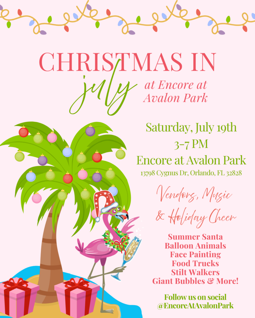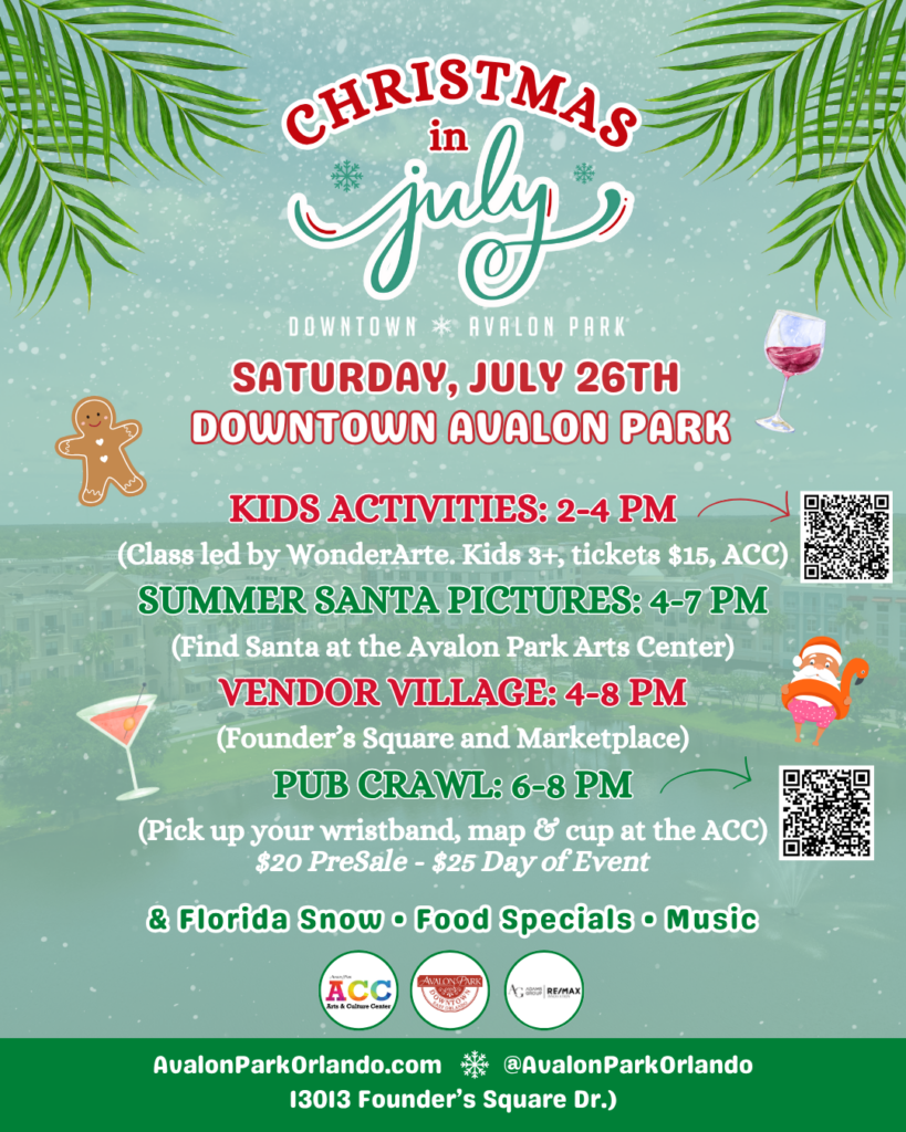 Experience the magic of Christmas In July at Downtown Avalon Park! Get ready for a jolly good time with Florida snow, collectible commemorative cups, mouthwatering food specials, toe-tapping music, and the chance to capture a memorable picture with our summer Santa. Embrace the holiday spirit and join us for a festive pub crawl like no other!