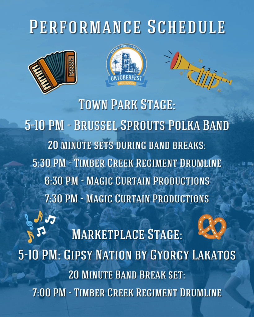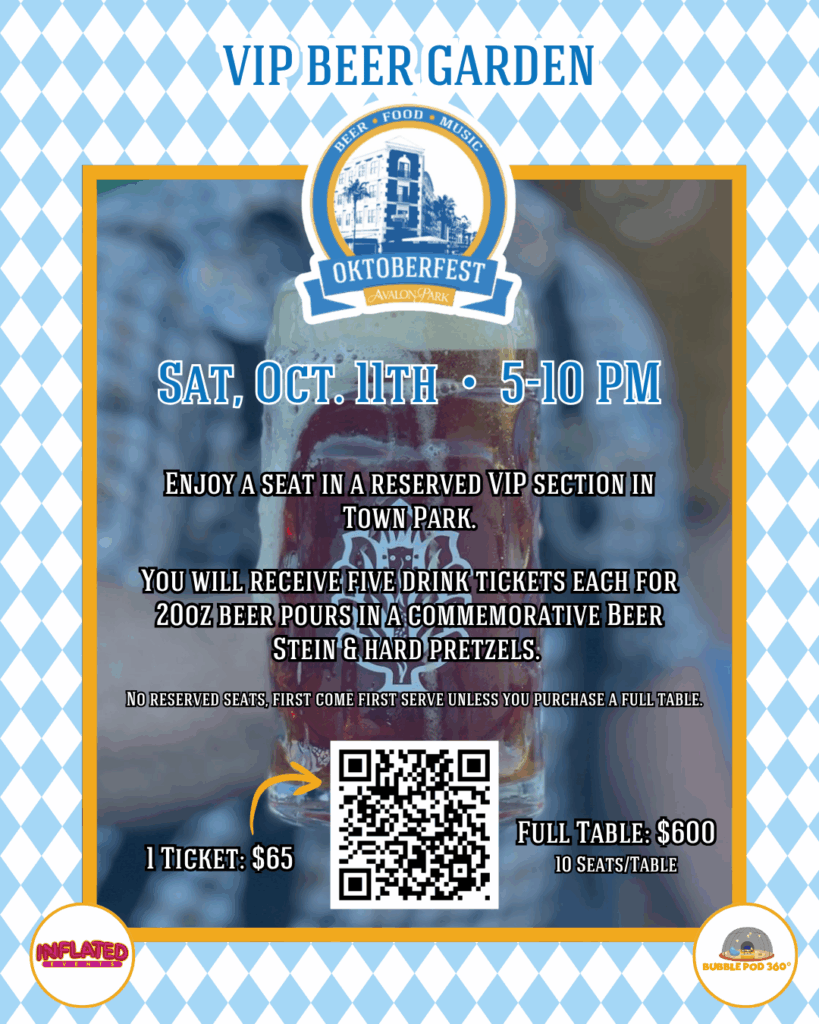 Avalon Park is hosting our annual Oktoberfest on Saturday, October 11th, 2025, with a Beer Garden Preview in Town Park on Friday, October 10th! There will be a Beer Garden, Live Music, Food Vendors, Alpine Dancing and plenty of good times to go around! The event will take place from 5-10 pm in Downtown Avalon Park.