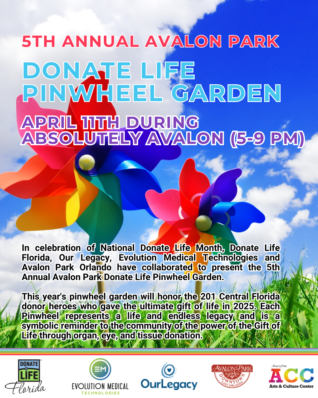 Join us for the 5th Annual Avalon Park Donate Life Pinwheel Garden on Saturday, April 11 from 5–9 PM during Absolutely Avalon.