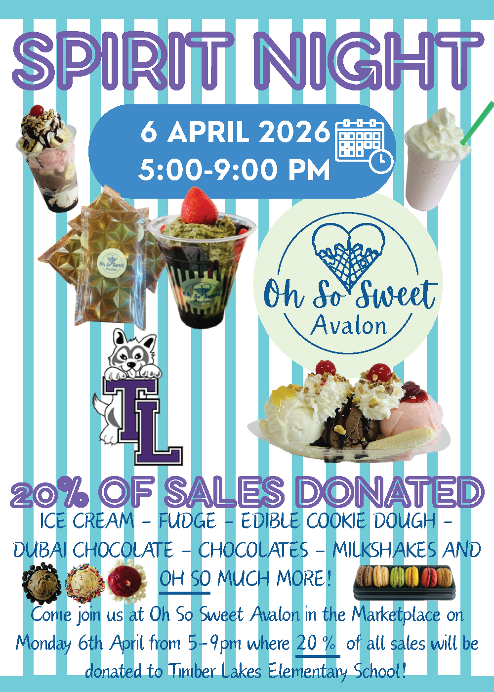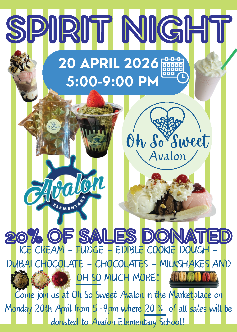 Join us for Spirit Night at Oh So Sweet Avalon in support of Avalon Elementary School.