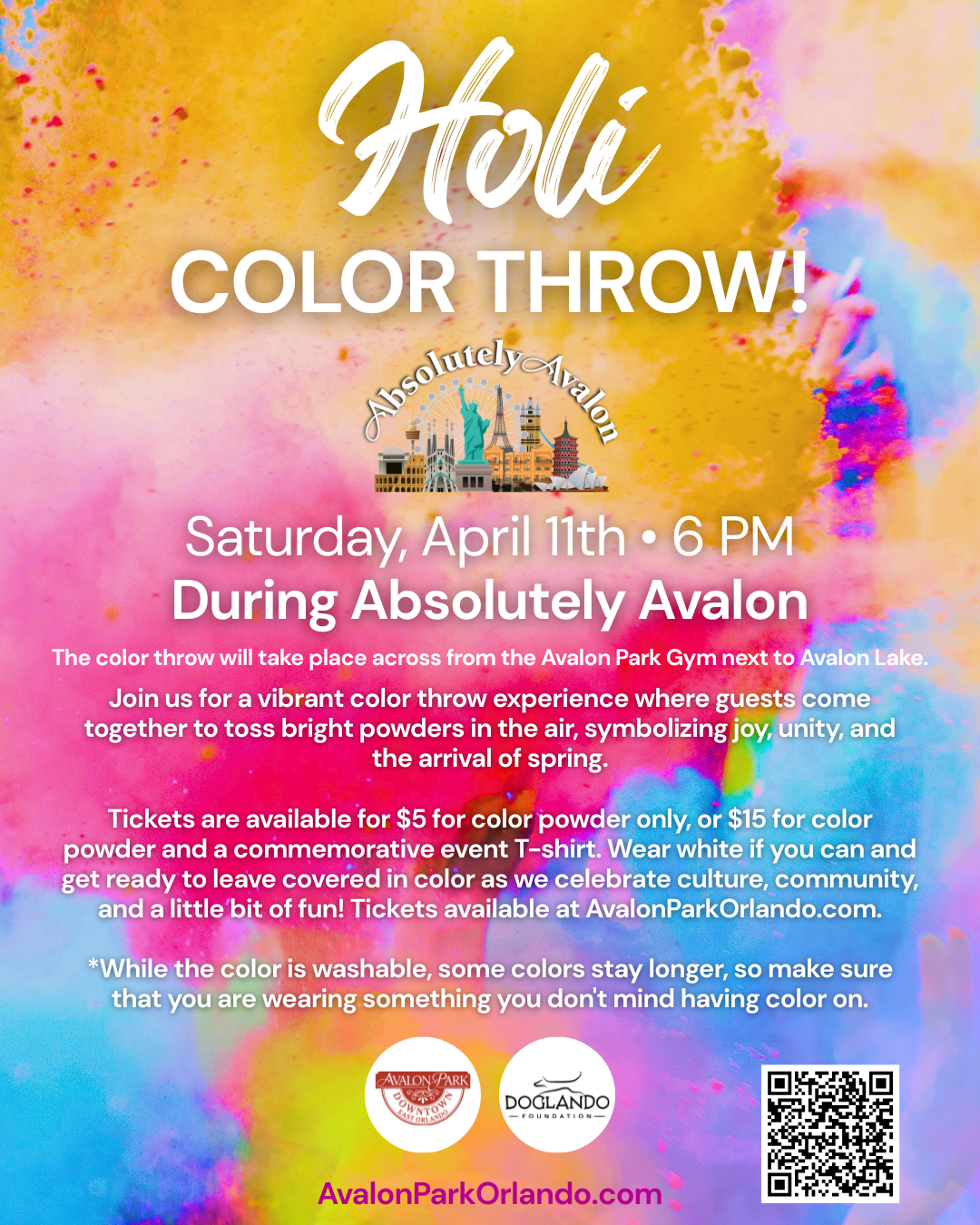 Get ready to throw some COLOR! 🌈✨ Join us for a vibrant Holi-inspired Color Throw during Absolutely Avalon!
